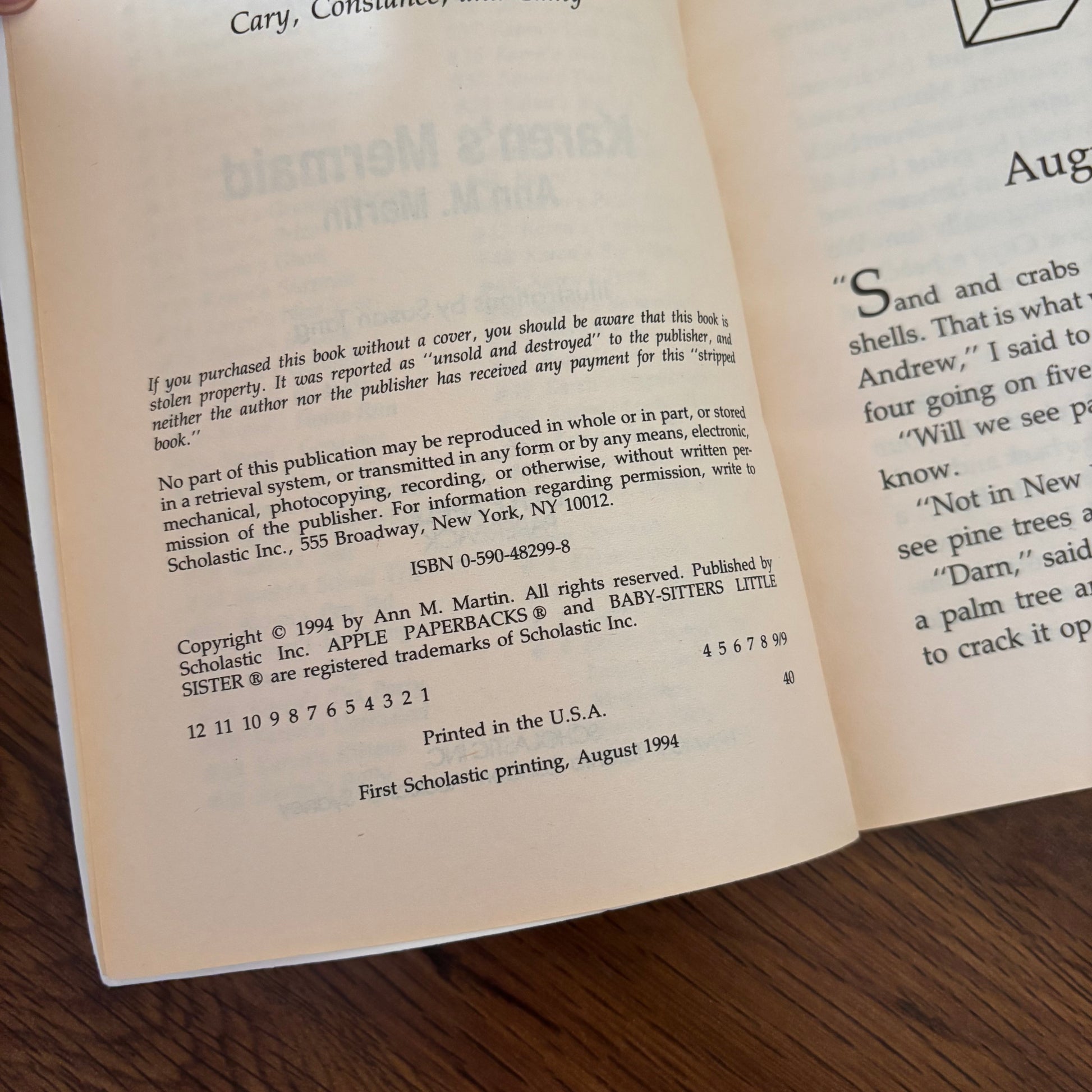 Babysitters Little Sisters #52 Karen's Mermaid (Includes Cards), 1994 Little Apple Scholastic Paperback