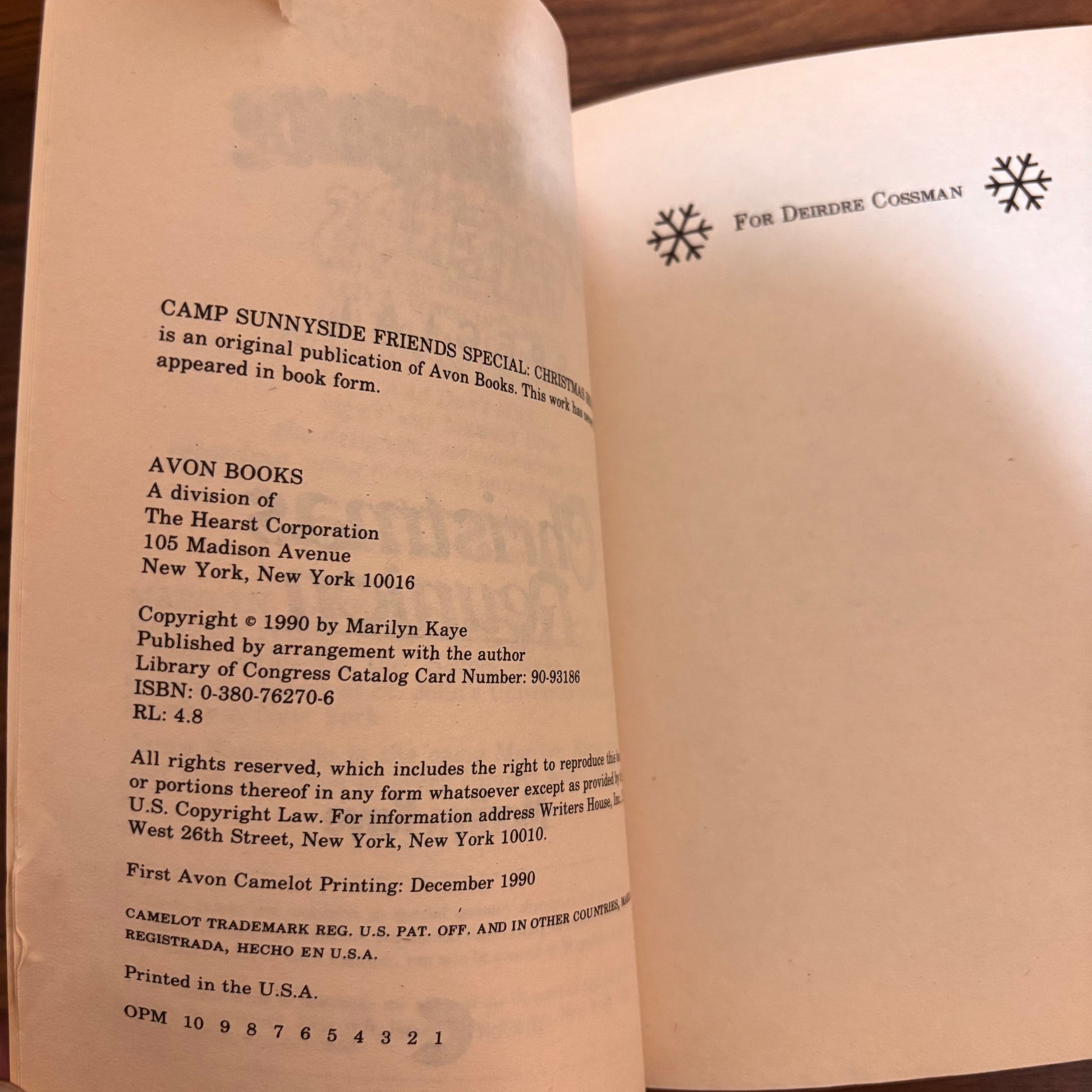 Camp Sunnyside Friends Special Christmas Reunion Marilyn Kaye 1990 Avon Camelot Paperback