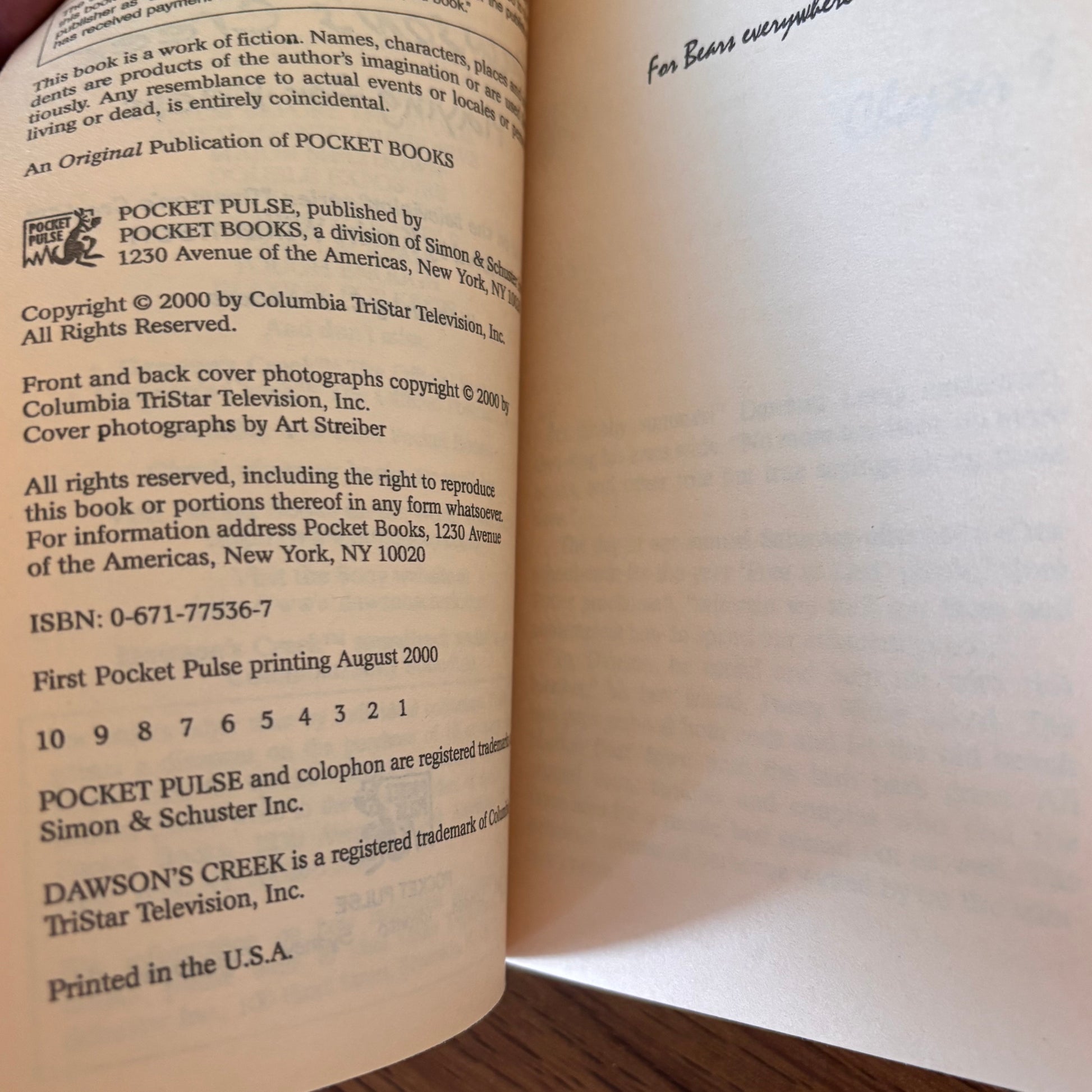 Dawson's Creek Playing for Keeps C.J. Anders 2000 Pocket Pulse Media Tie-In Paperback