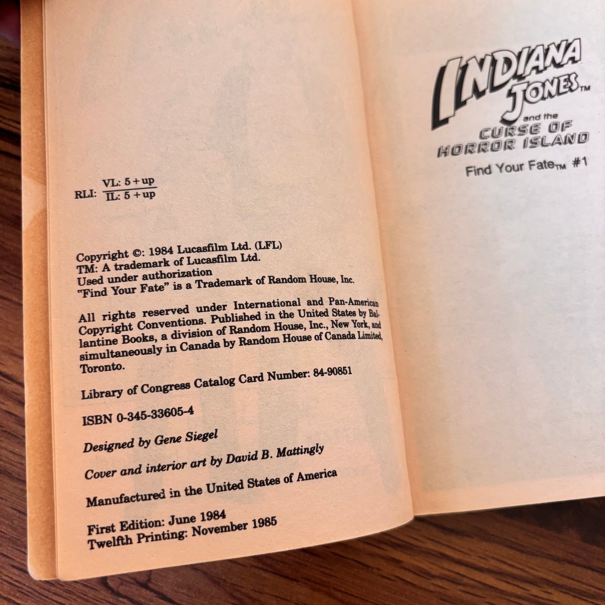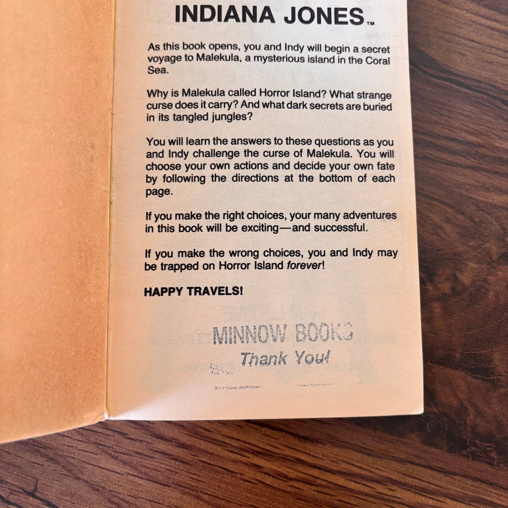 Indiana Jones and the Curse of Horror Island Find Your Fate #1 RL Stine 1985 Ballantine YA Paperback