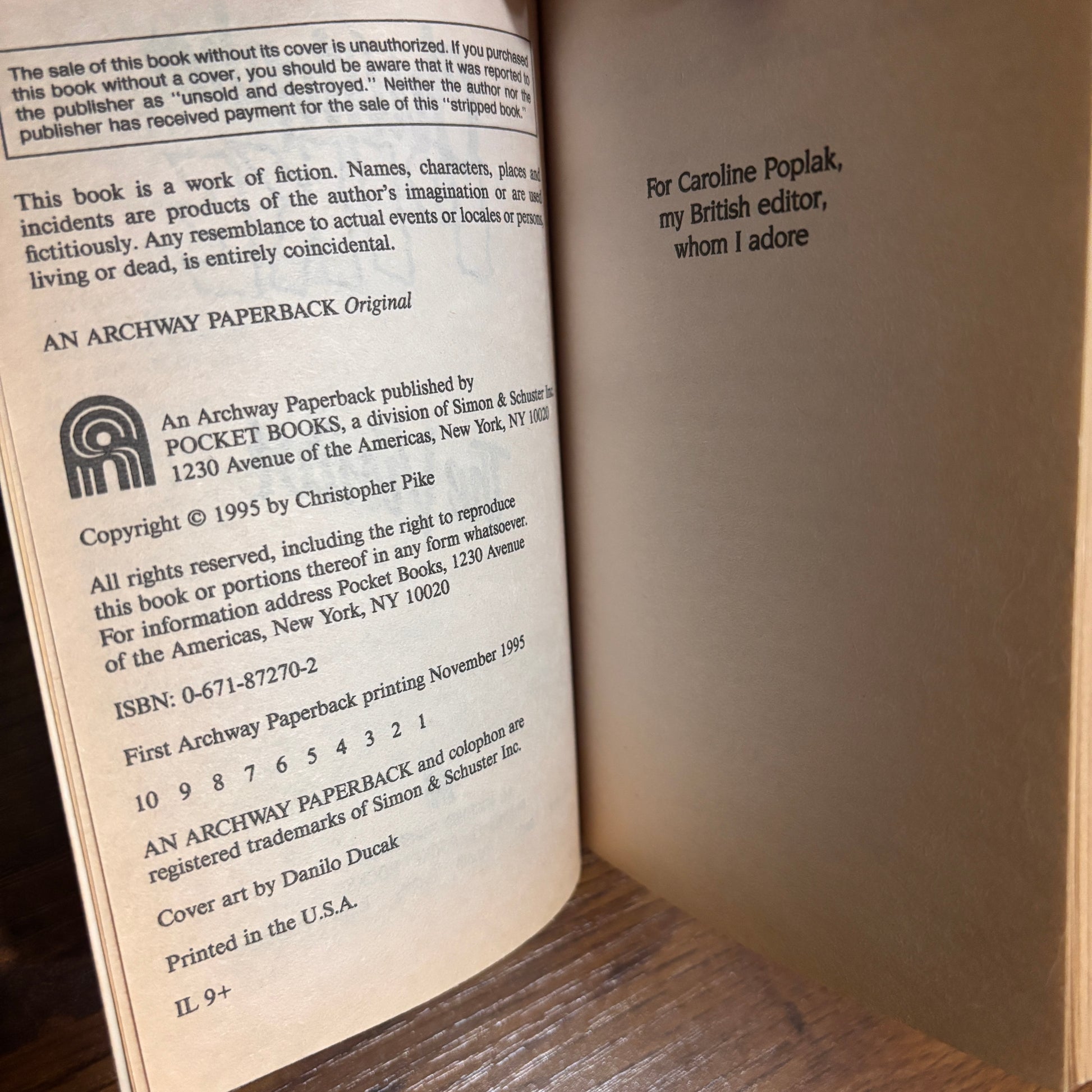 Christopher Pike, The Visitor, 1995 Archway Paperback